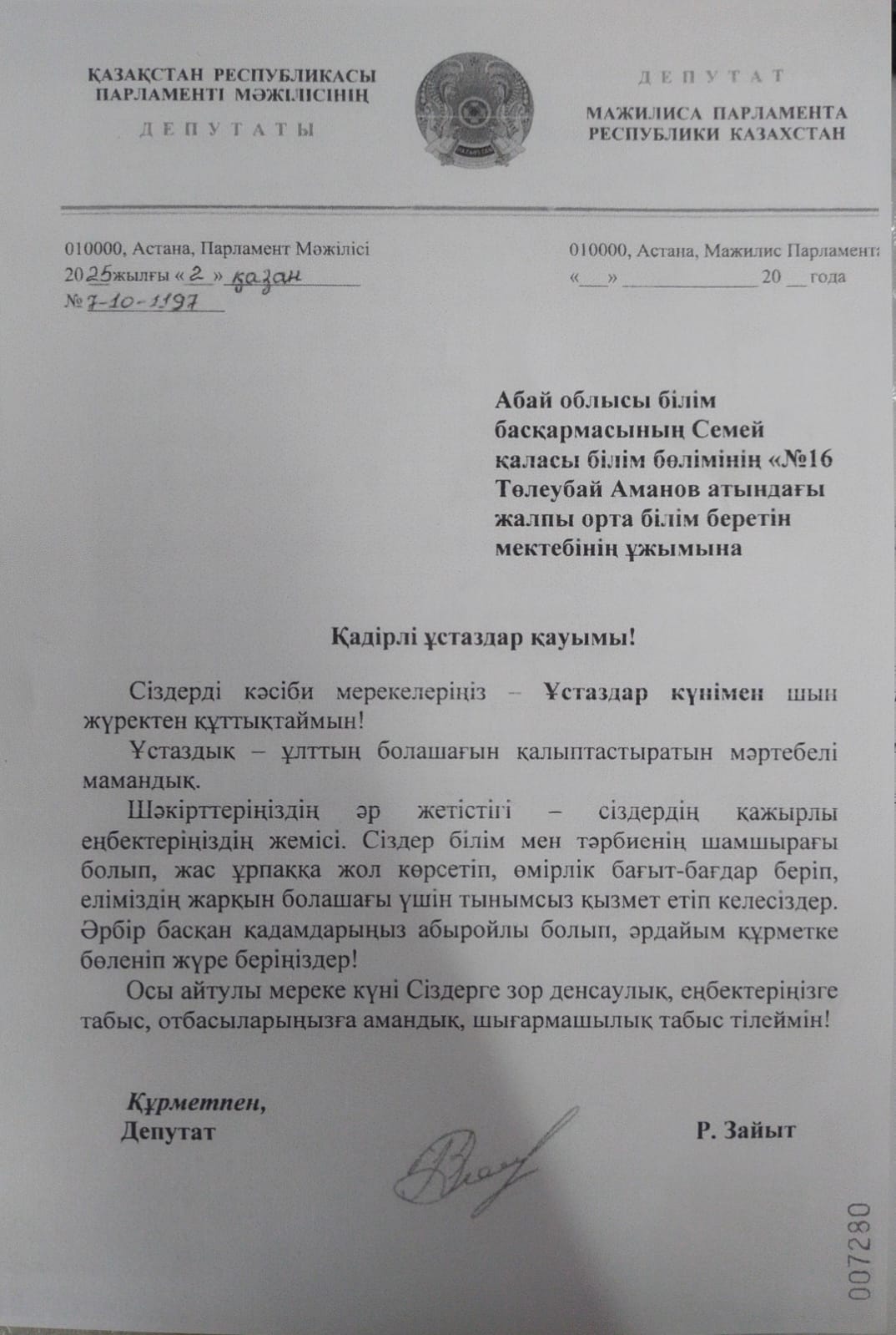 ҚҰТТЫҚТАУ депутат Р.Зайыт