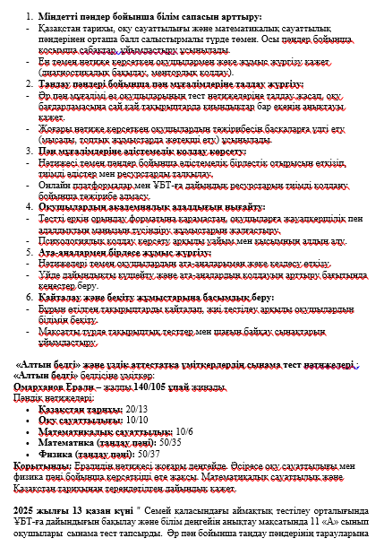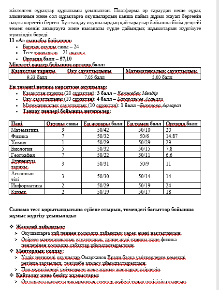 03 октябрь 2025 0 1 2 3 4 5 11 «А» сыныптан алынған сынама тест қорытындысы бойынша АНЫҚТАМА 2025-2026 оқу жылы