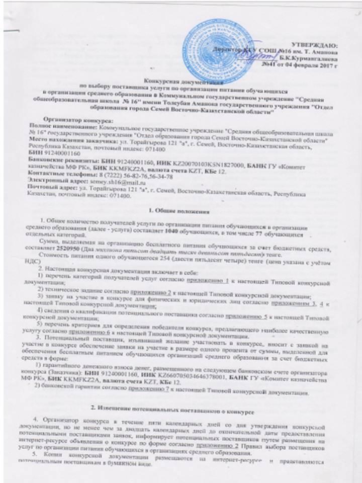 Nutritionды ұйымдастыру бойынша конкурс » Средняя общеобразовательная школа № 16