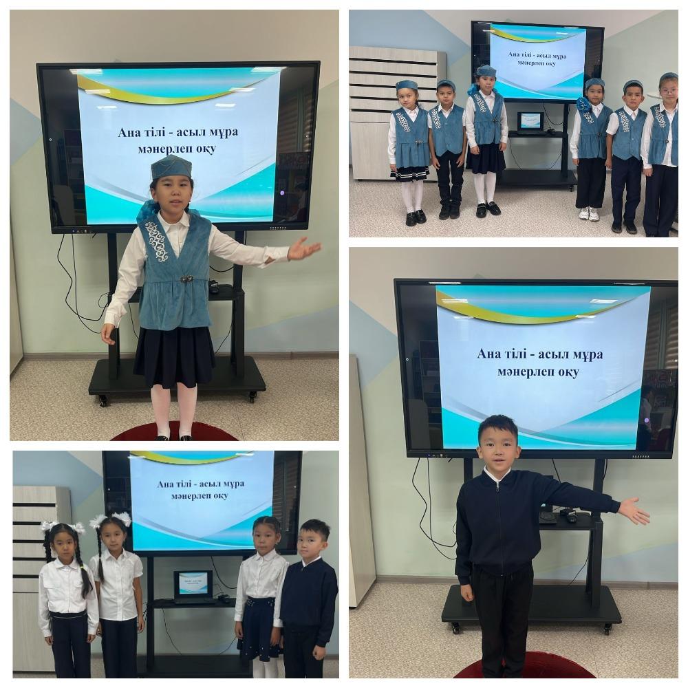 Мектеп кітапханашыларының ұйымдастыруымен бастауыш сыныптар арасында “Ана тілі-асыл мұра”атты мәнерлеп оқу өткізілді.Мақсаты: Оқушылар өз еліне,ұлтына деген сүйіспеншілігін арттыру,тілді ұлттық мұра ретінде сезінуге,тіл мәдениетін сақтай білуге үйрету,тіліміздің қадір,қасиетін бойларына дарыту.Белсене қатысқан 4”Б”,4”Г”,3”А” сынып оқушыларына алғыс айтамыз.