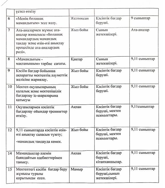 2025-2026 оқу жылы кәсіптік бағдар беру жұмыс жоспары